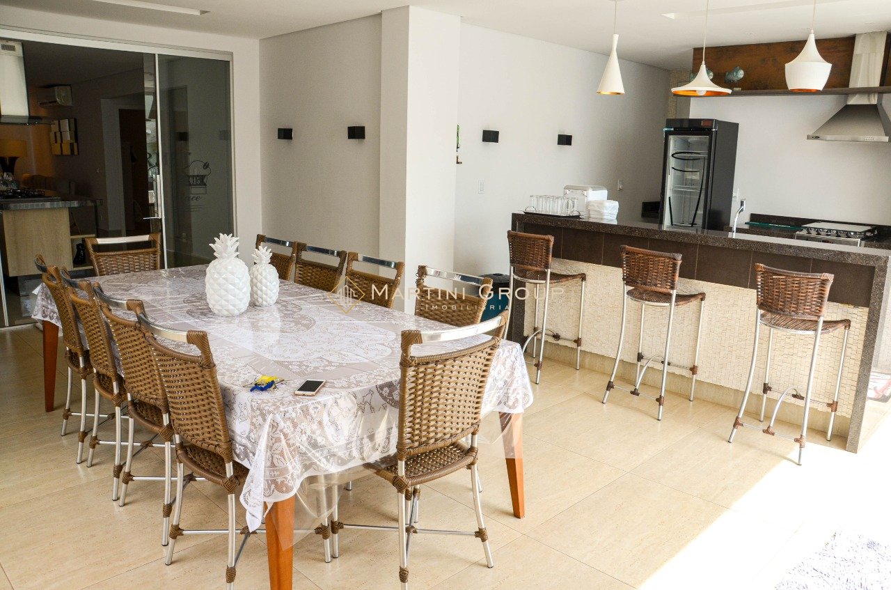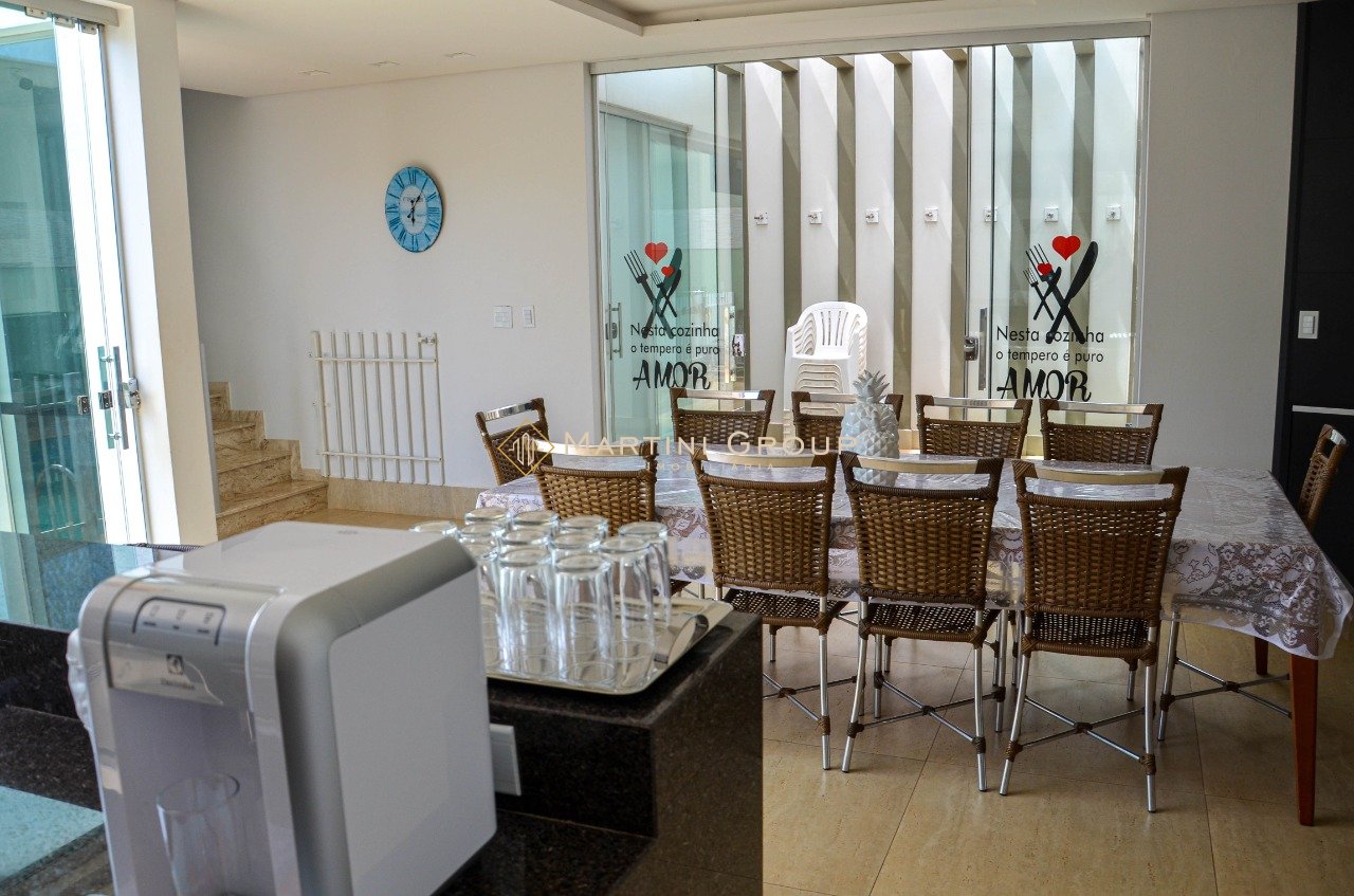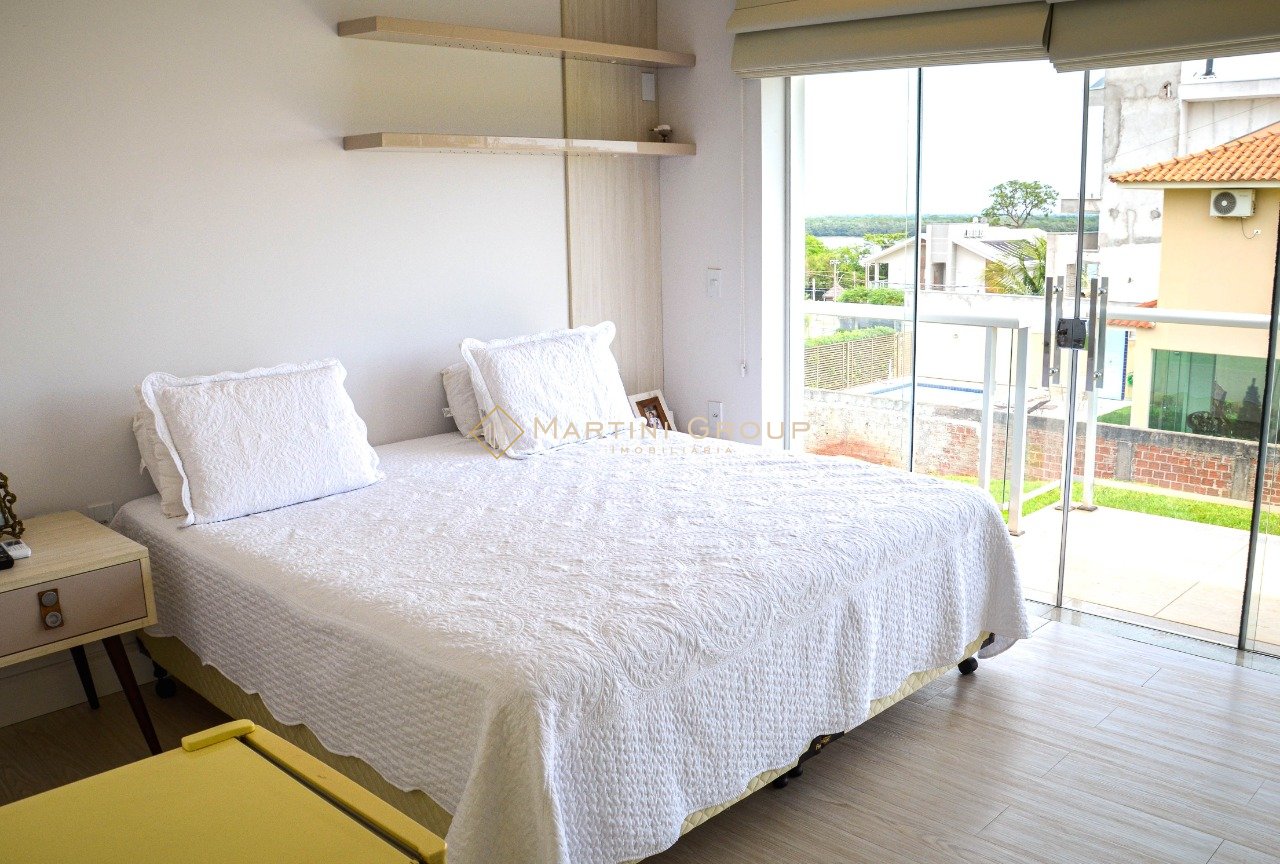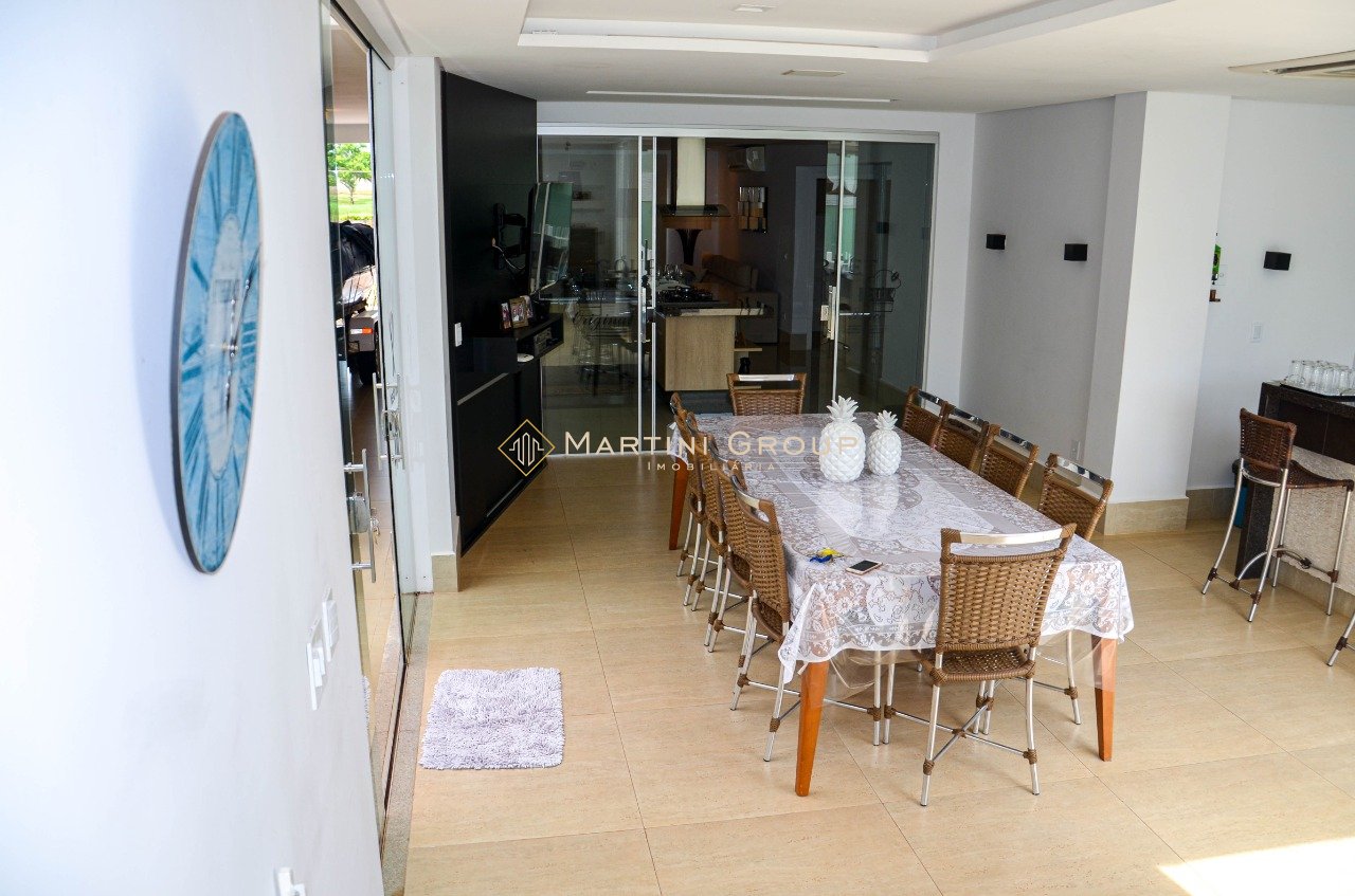 Sobrado localizado no condomínio Águas do Rio Paraná. Terreno com área total de 428,80 m² e área construída de 260 m², contendo 05 suítes, sala de televisão, sala de jantar, espaço gourmet, lavanderia, banheiro social, garagem, jardim e piscina em alvenaria. Sobrado entregue com mobília completa. Condomínio bem localizado, com portaria 24 horas, excelente rampa exclusiva, campo de futebol, quadra de esportes, espaço gourmet, espaço kids.