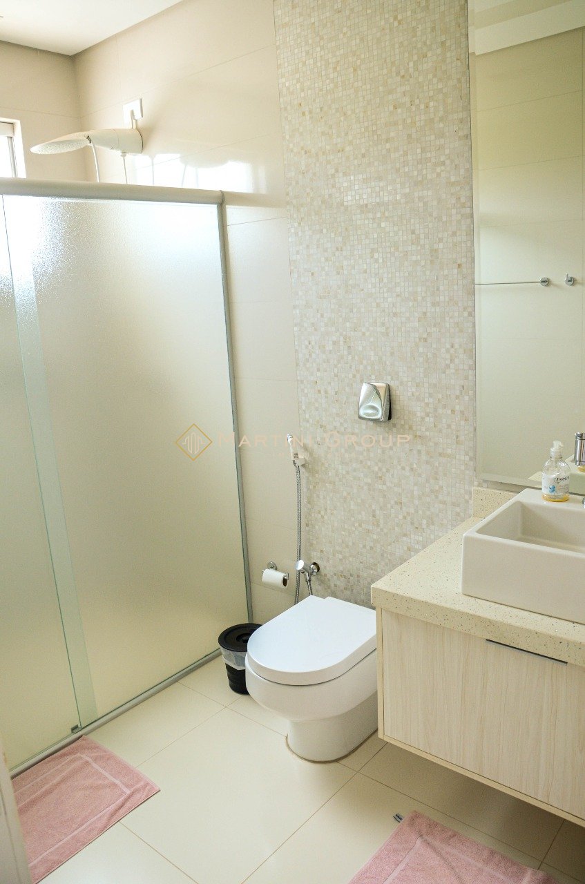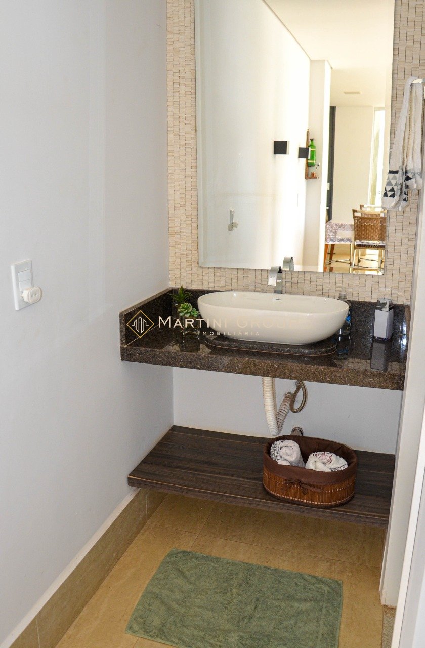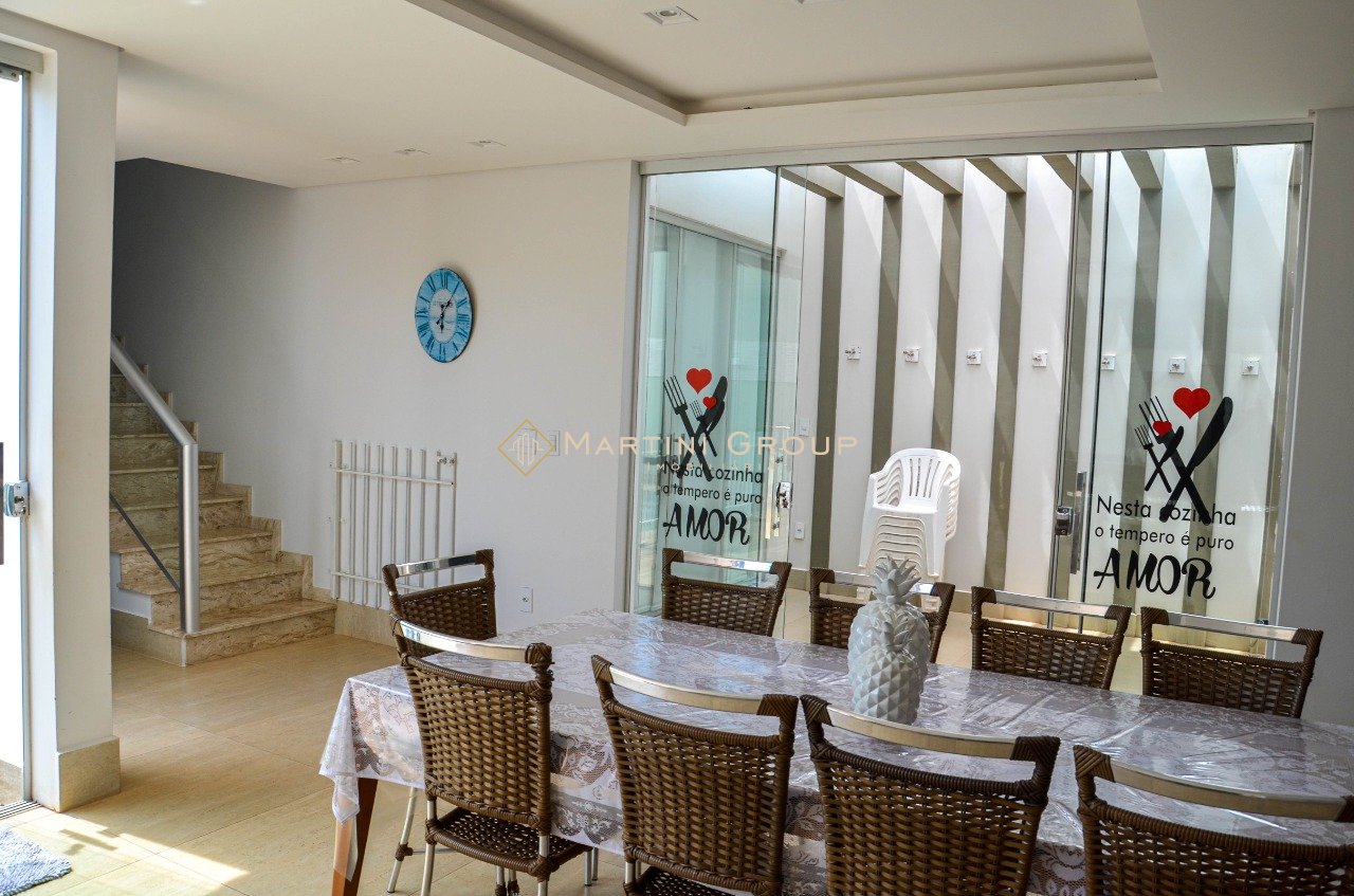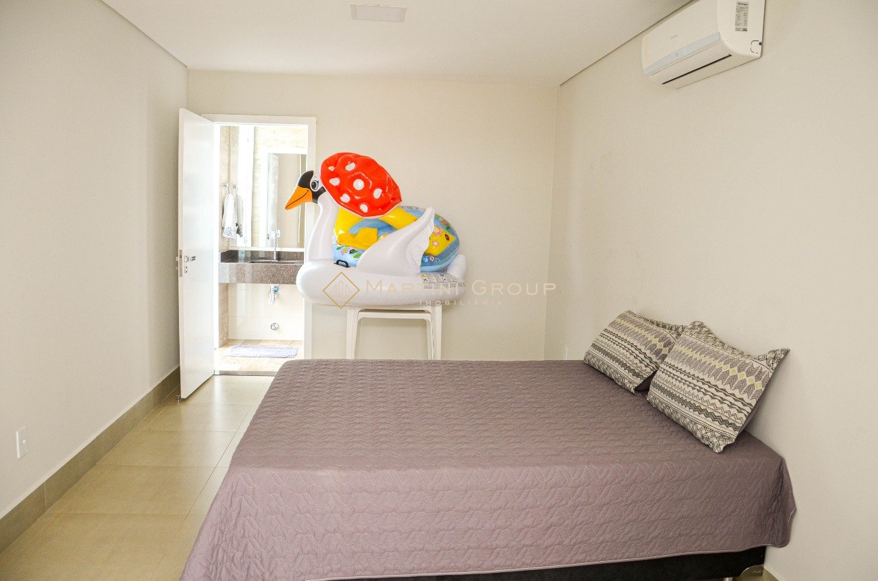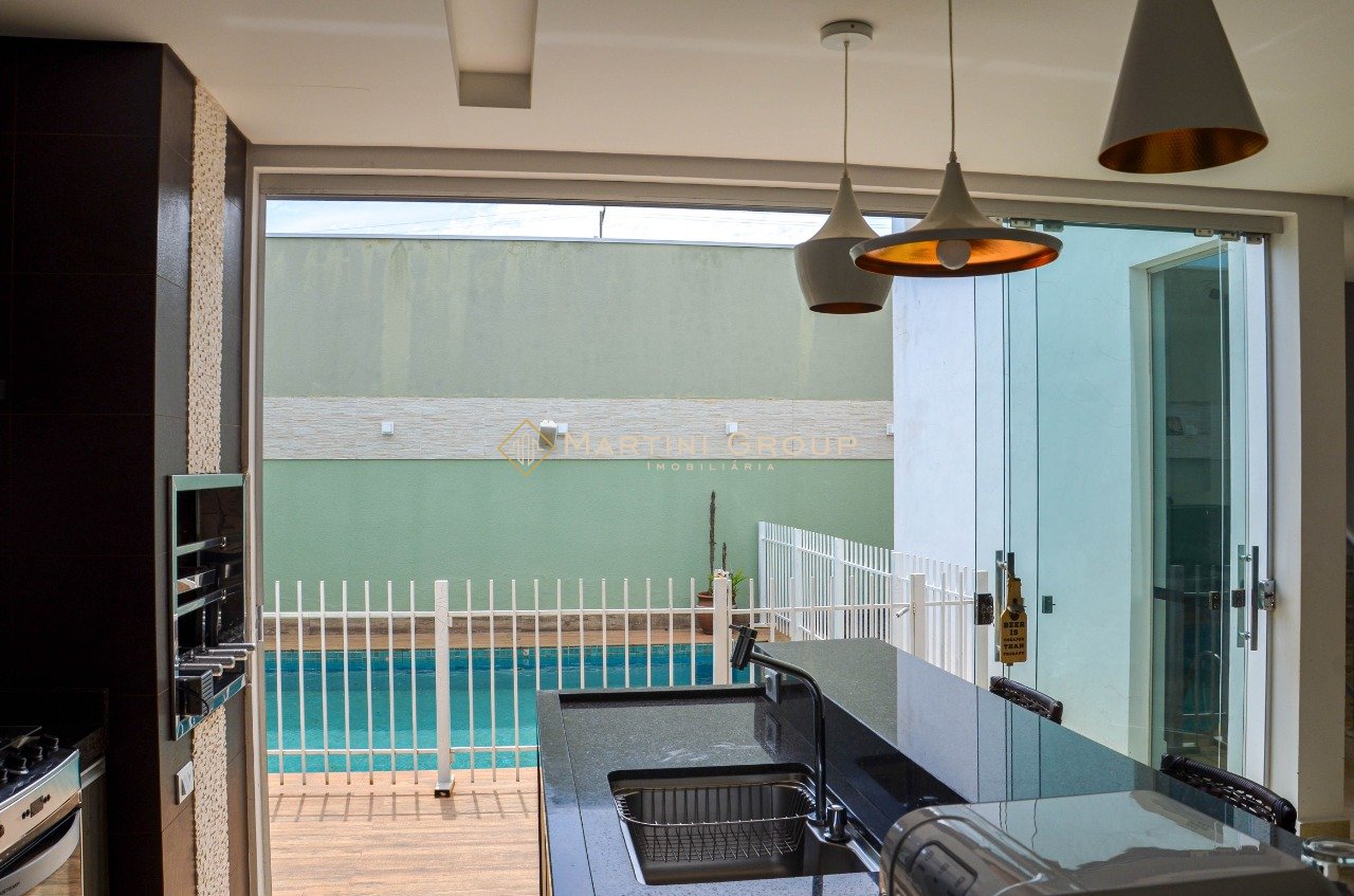 Sobrado localizado no condomínio Águas do Rio Paraná. Terreno com área total de 428,80 m² e área construída de 260 m², contendo 05 suítes, sala de televisão, sala de jantar, espaço gourmet, lavanderia, banheiro social, garagem, jardim e piscina em alvenaria. Sobrado entregue com mobília completa. Condomínio bem localizado, com portaria 24 horas, excelente rampa exclusiva, campo de futebol, quadra de esportes, espaço gourmet, espaço kids.
